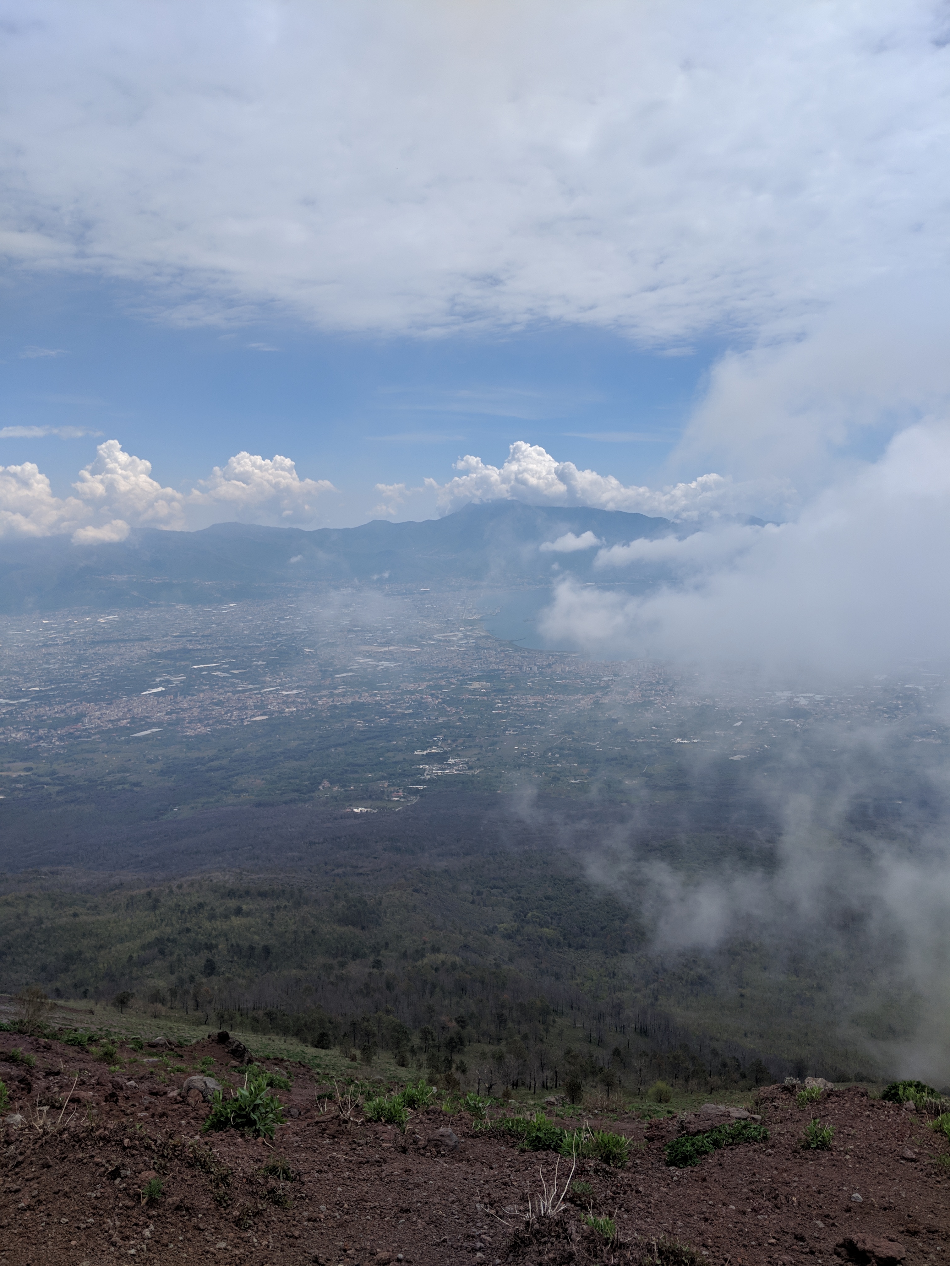 After a day of strawberry visits, we had the opportunity to climb Vesuvius. It really does dominate the local landscape, and it’s more than just a historical monument. Vesuvius is considered the most dangerous volcano in the word, both because of the densely populated area it is surrounded by and also because of its volatility. It was a steep and winding drive, and then a step and winding hike, but we made it to the caldera. There was plenty of smoke seeping from cracks in the rock face. The clouds eventually pulled back enough for us to see Naples sprawling below us around the bay.