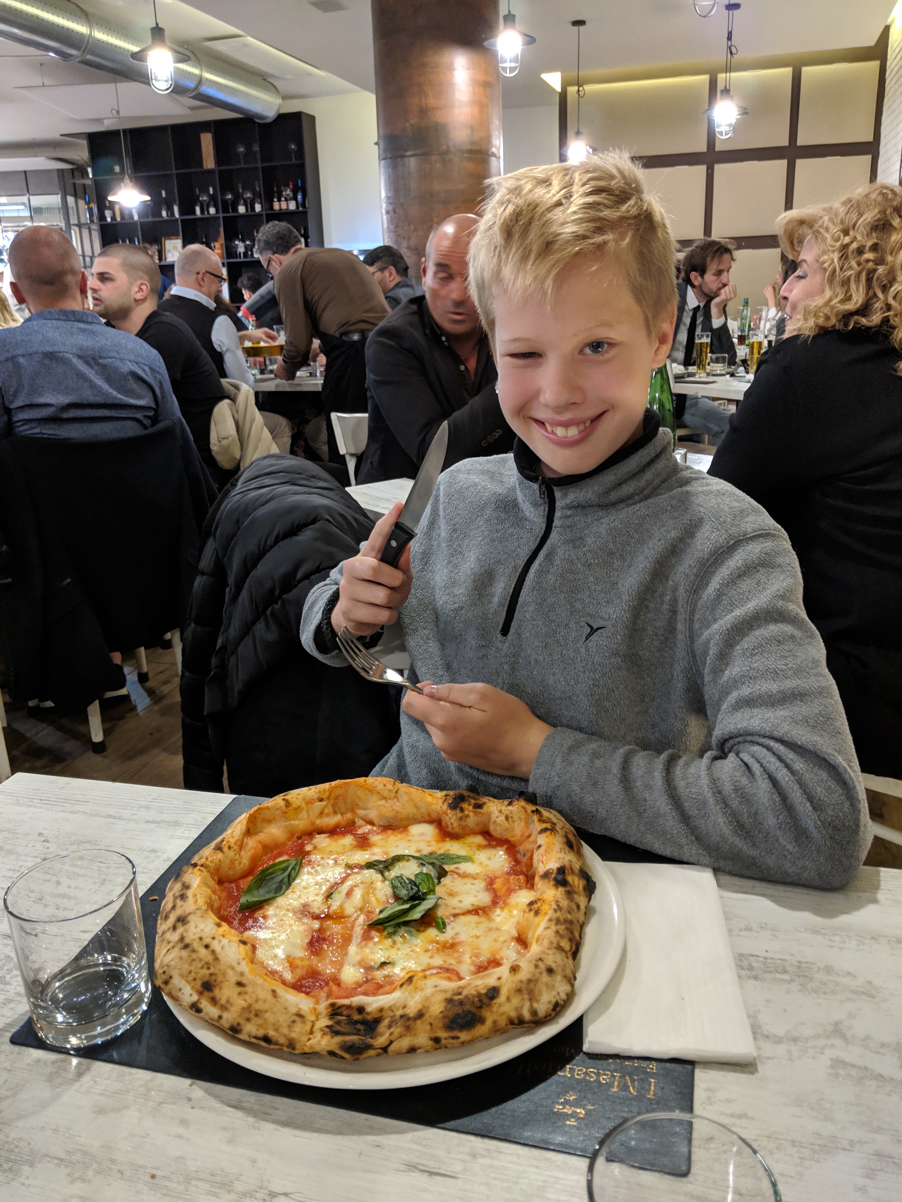 We finished off our visit to the Naples area the way we began–with pizza. We had read that some people consider the second-best pizza restaurant in the world to be in Caserta. I have no idea how people make that kind of assessment, but we figured we had better weigh in on this important issue. I Masanielli was a hopping local place with an open kitchen and the founding chef prominently at work. It really was the best pizza we had ever had. Probably the best we will ever have. We are raising our kids to be those insufferable foodies on accident, folks–I apologize in advance.