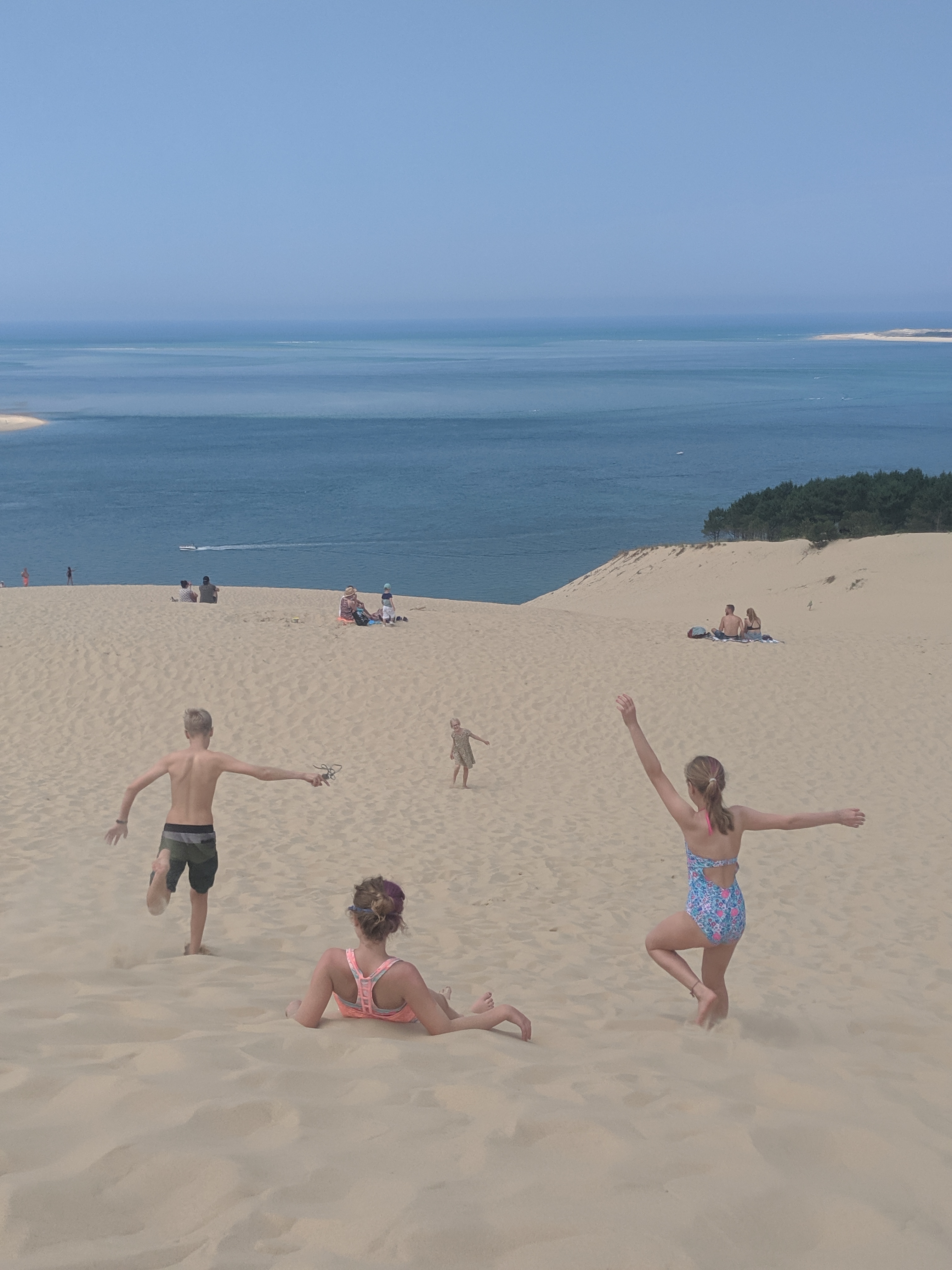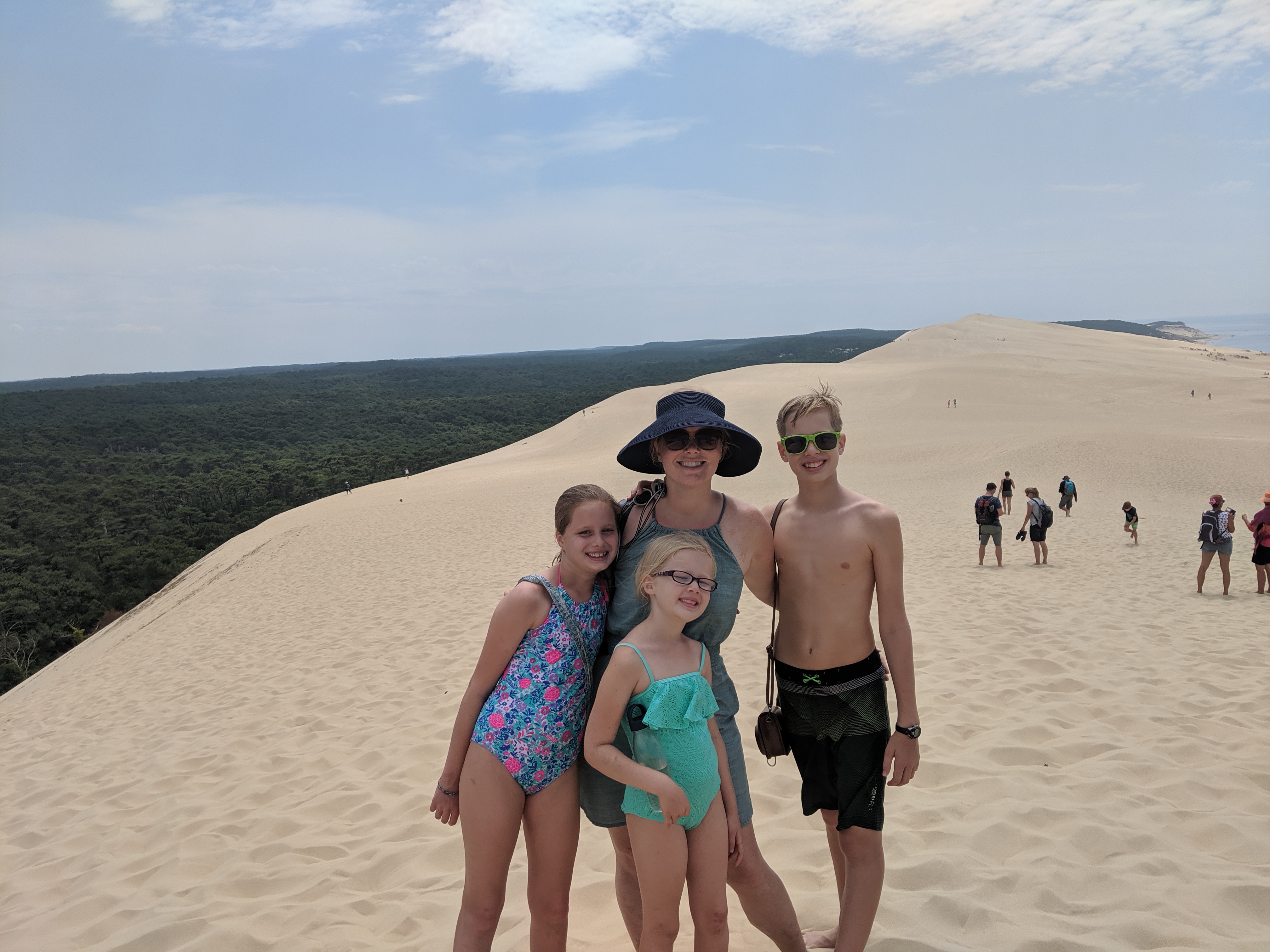 We took a day trip to Arcachon, since the weather was so warm. Although we had been to Arcachon before, we had not been to the Dune of Pilat, which is the largest sand dune in Europe. Let me just say that I was unprepared for the sheer enormity of the mountain of sand that sits between the forest and the sea. The kids had a blast running up one side and down the other (and back up again). Victoria and I contented ourselves with climbing up the forest side and enjoying the view from the top. It was breathtaking.