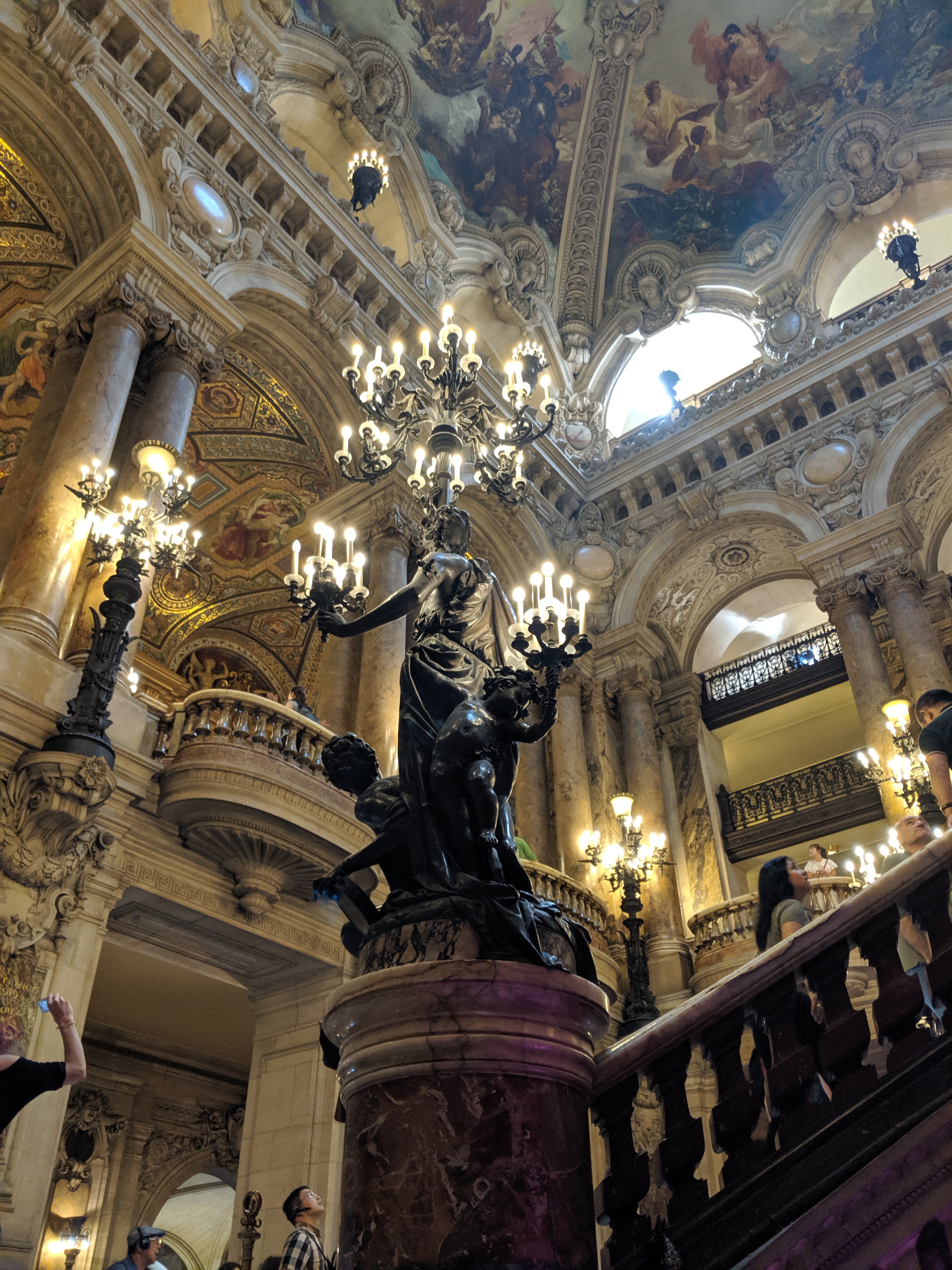 Frank and Claudia had just finished up a river cruise tour, so they had already had quite a bit of time with churches, museums, and tour groups. Frank seemed to be happy to just have some time to sit and rest, but the kids and I took Claudia to the Opera house. She was a professional opera singer in her day, so the Palais Garnier was of special interest to her. I had taken the kids there on our first trip, but frankly we had all been feeling fairly grumpy that day. We needed a do-over.