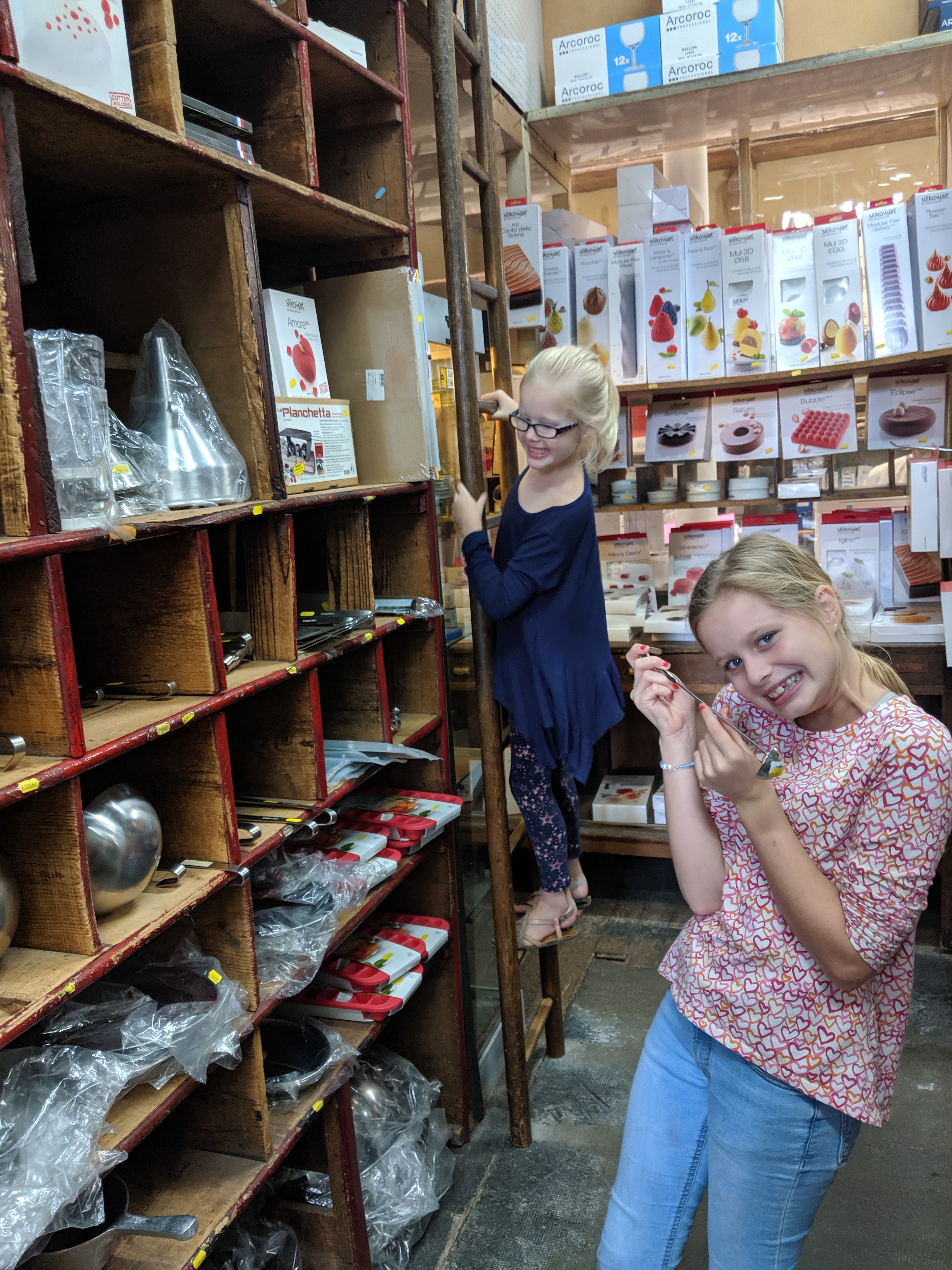 The next day, Vance took his parents and Isaac to the Louvre. The girls and I had already braved the vicious masses in July, and we weren’t up for that kind of hustle and bustle again. We took a leisurely walk together, and stumbled upon the “passages couverts,” the old medieval covered streets that house lots of little boutiques and shops. We stopped by E. Dehillerin and drooled over all the specialty items in that world-famous cooking store.