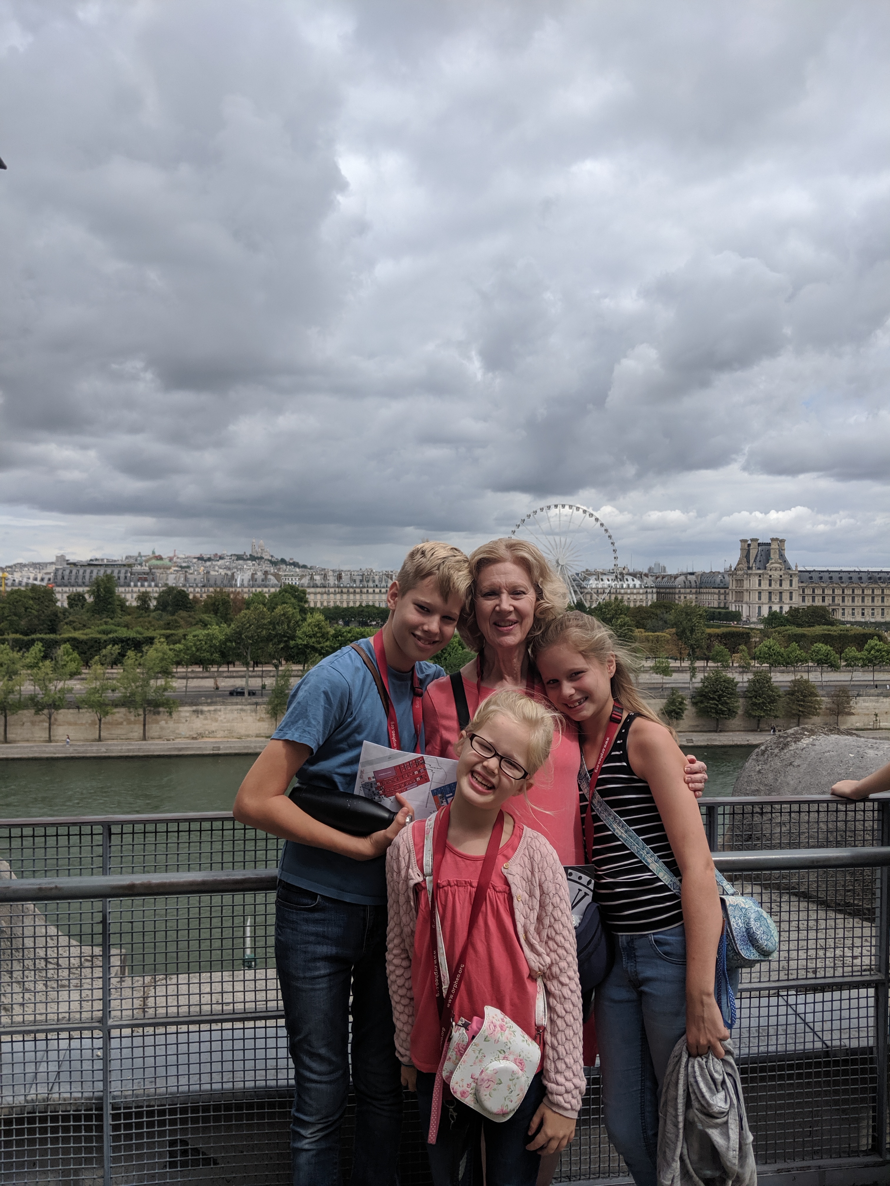 Afterwards, we met Vance and the family in the Tuileries (just outside the Louvre), and I decided to walk back with the parents and kids while Vance took an Uber back. We walked along the Seine, which is always our favorite, and then tried to find one of our favorite pastry shops along the way. However, August in France struck again, because the boulangerie was closed for the conge d’ete. By the time we were 2/3 of the way home, I was driving everyone on a forced march, because my definition of a nice walk is maybe a little more ambitious than other people would prefer. Oops. We got ice cream at the end to soothe tired feet, and it worked. Ice cream always works.